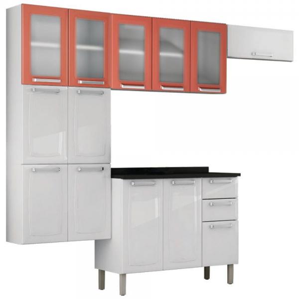 Kit Cozinha Carmen 13 Portas 2 Gavetas Branco / Laranja Salmão Itatiaia