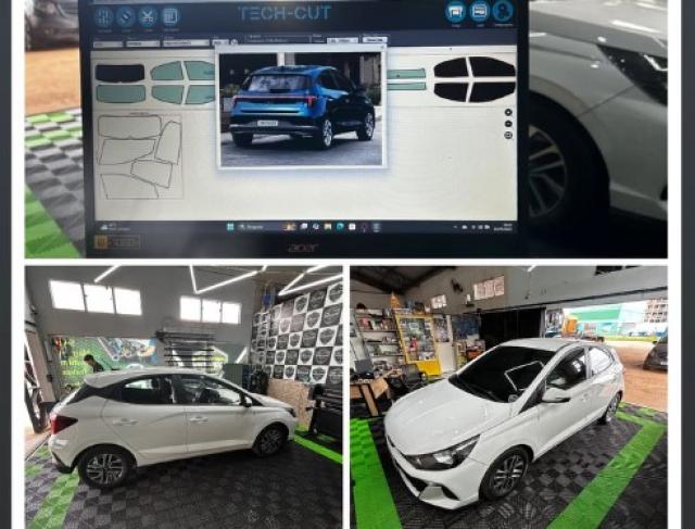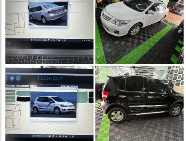 Utilizamos máquina de corte computadorizada Teknova, que realiza cortes milimétricos sob medida para cada modelo de carro, evitando riscos nos vidros e assegurando um encaixe perfeito. A aplicação é feita por profissionais treinados, com materiais de alta qualidade e durabilidade.